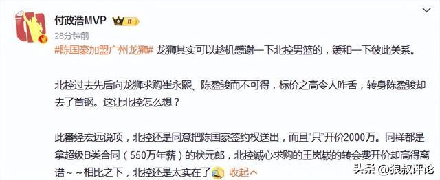 根据此前媒体报道,广东男篮花费了2000万获得陈国豪的签约权,创造状元签的价值成交新高。