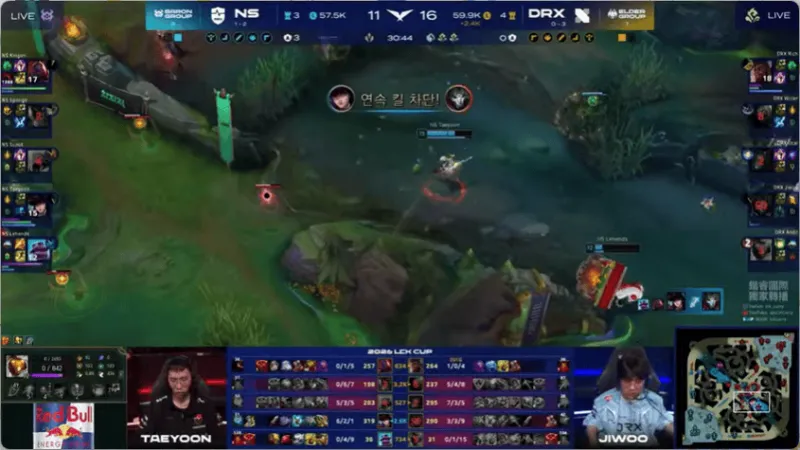 34分钟,DRX中路果断开团,击杀NS双C后打出0换4,随后DRX顺利一波